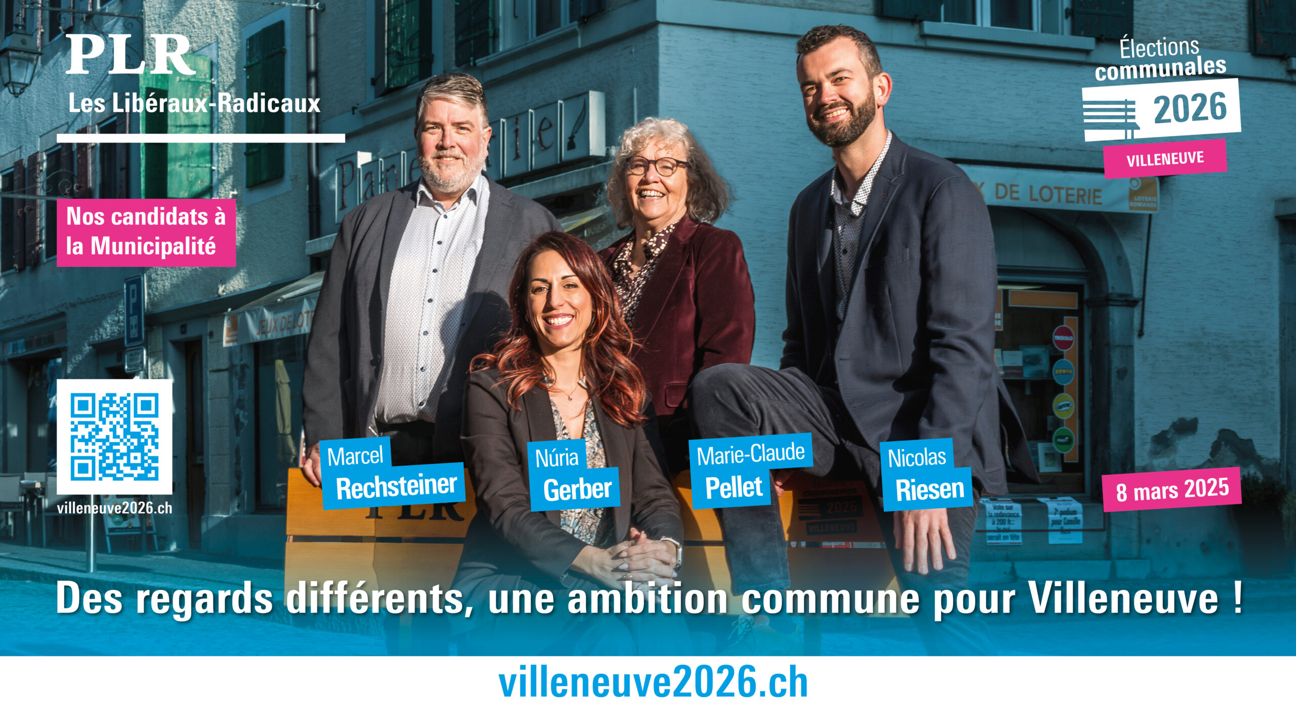 Le PLR Villeneuve vous présente 4 candidat·e·s à la Municipalité, une équipe engagée et complémentaire, ancrée dans la vie locale.
